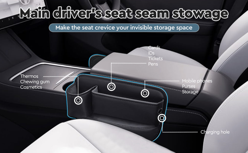 - 【Move with The Seat】This car seat gap filler can follow the power seat to move back and forth. Because the internal sponge has good elasticity, it helps to secure the car storage box firmly, so it will not fall deeply into gaps or in front of the seat due to seat movement.