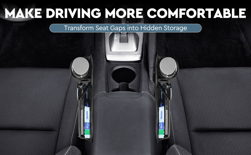 - 【Say Goodbye to Clutter & Lost Items】:Prevent phones, keys, cards, and sunglasses from disappearing into seat gaps! Our gap filler creates a secure storage zone with non-slip velvet lining and dual 2.7" spill-proof cup holders –Keep drinks stable and essentials accessible while driving.