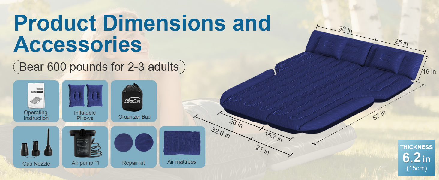 【Various Usage】: 6 chamber design. Inflate the shape depend on your need (apply to SUV, Back seat, Truck, Camping, Beach, Tent, Room)