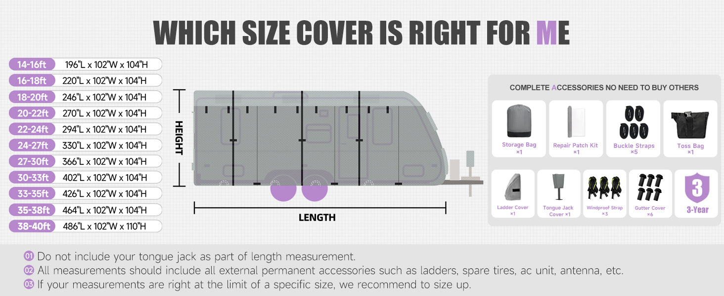 Please read the size chart carefully, if you have an air conditioner on top, please buy a larger size. If you are still not clear, please tell us the model of the RV and we will help you choose.