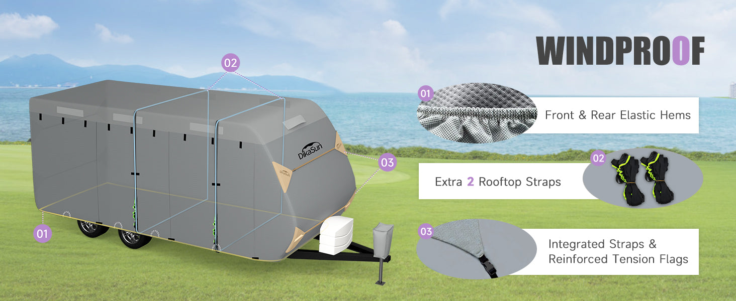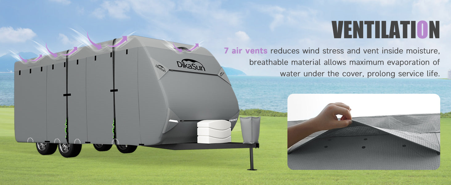 DikaSun 7 Layers Top Travel Trailer RV Cover Windproof Waterproof UV Protection