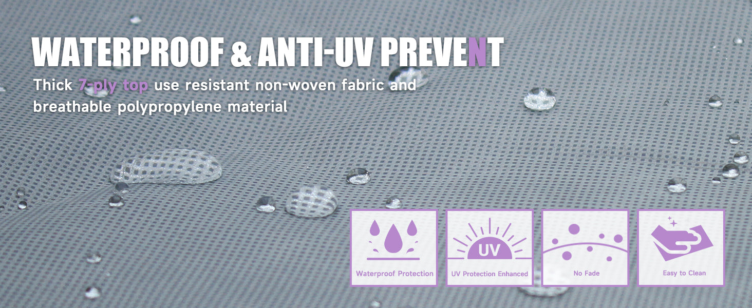 Crafted with a thick 7-ply non-woven fabric top and breathable polypropylene sides, this cover protects against rain, snow, high winds, bird droppings, dust, scratches, and UV rays. Ideal for both summer and winter use.