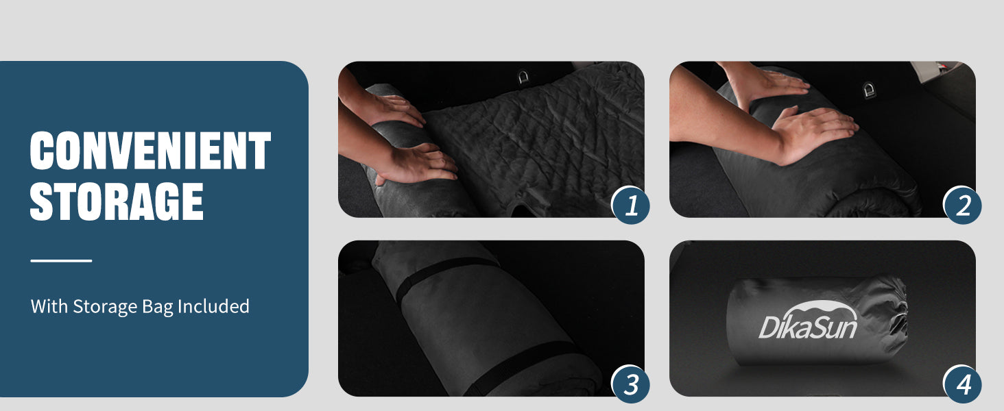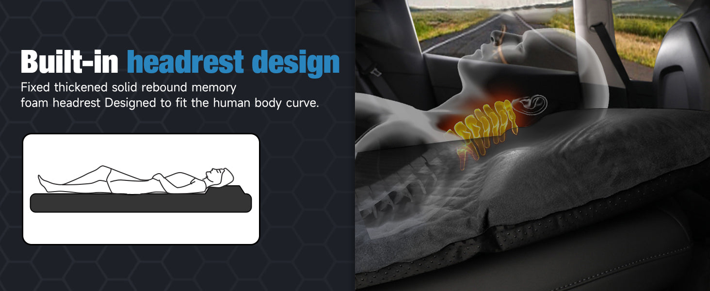 - SUPER COMFORTABLE: This Tesla Y self inflating sleeping pad is made of high-density, high-resilience memory foam and tear-resistant fabric, so you don't need to worry about being punctured and torn by sharp, pointy objects. The built-in pillows are designed specifically for use with the car mattress to conform perfectly to your body, reducing the likelihood of collapsing and providing you with superior support and unparalleled comfort.