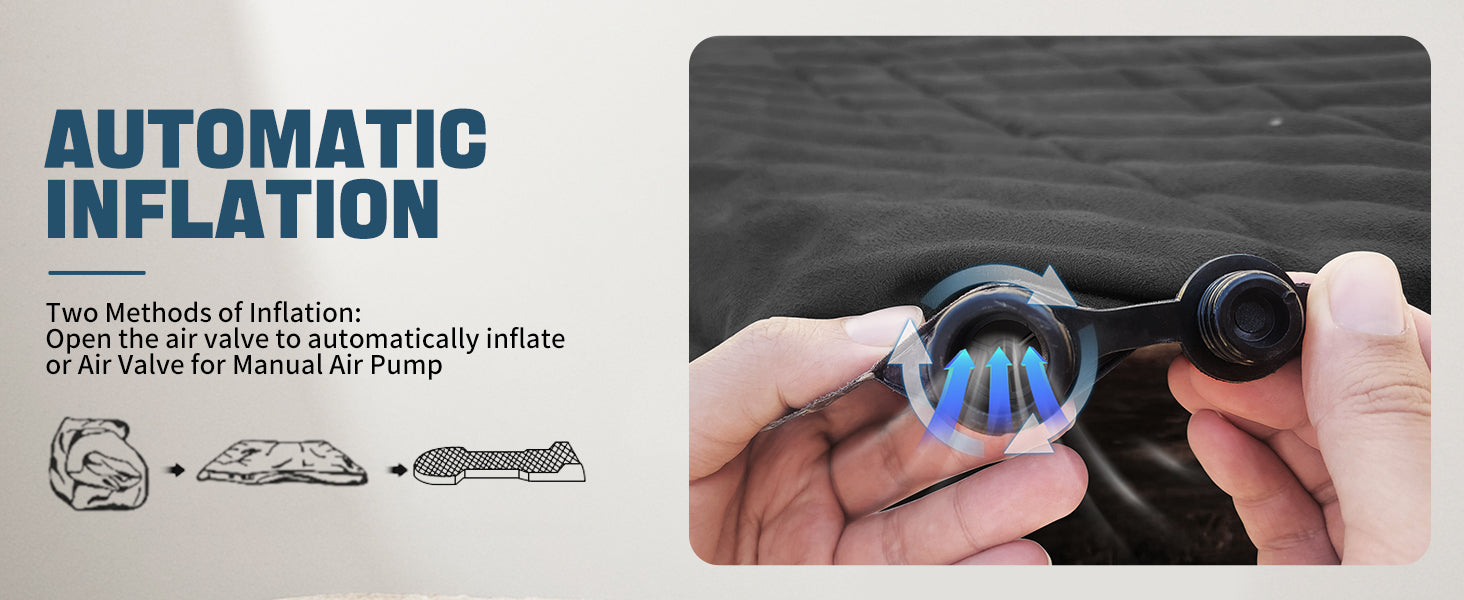 - Effortless Inflation & Deflation: Our Tesla Model Y camping bed features a 2-layer inflation valve for hassle-free setup. Simply twist the valve, and the mattress inflates itself in 5-10 minutes—no extra pump needed. For even faster inflation or deflation, use the portable electric pump to be ready in just 2 minutes. Plus, the advanced valve design reduces air leakage by 30% compared to traditional car mattresses, ensuring a more reliable and comfortable sleep on all your adventures.